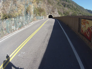 That guy in the left corner is me, see that bike cam on my helmet? Preparing for the last tunnel. There were some construction works here at my right. Usually you can see the mountains and river bed here but not today.